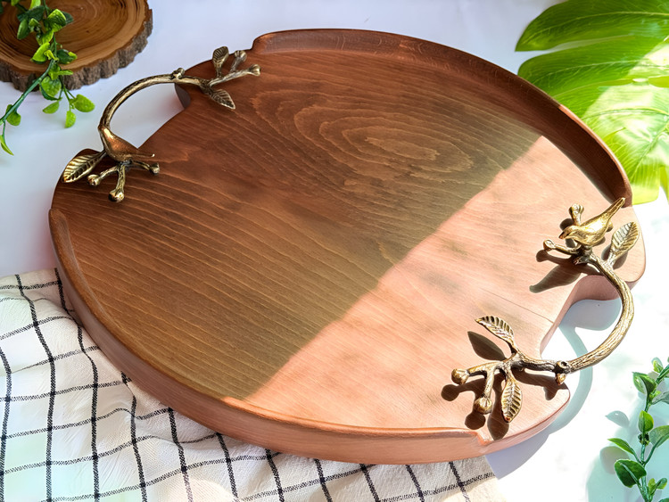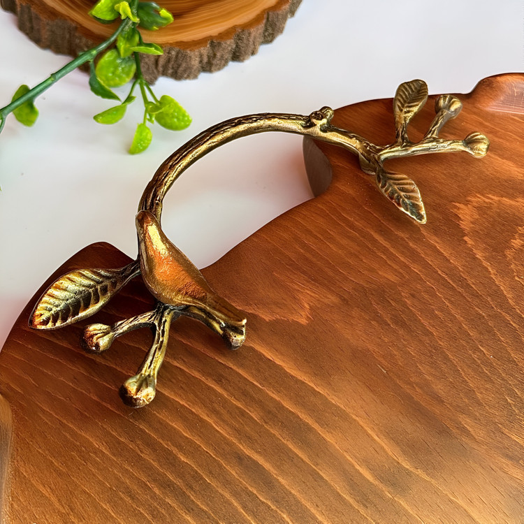 سینی چوبی گرد دسته برنجی کد ۰۰۳۳