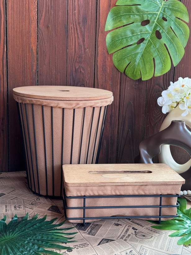 سطل و جا دستمال دارای درب چوبی