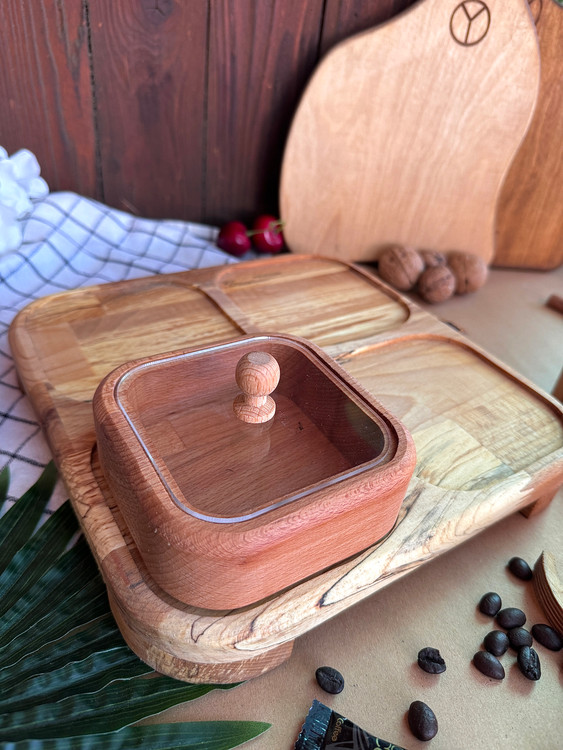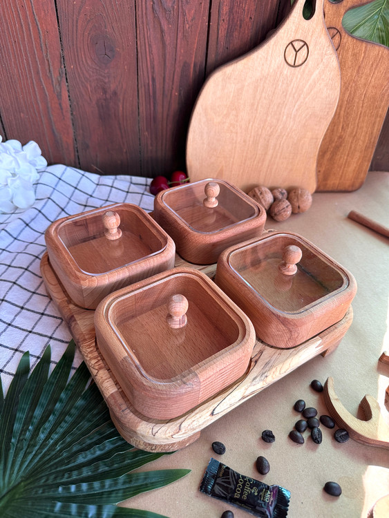 دارای چهار ظرف در دار و یک کفی تمام چوب