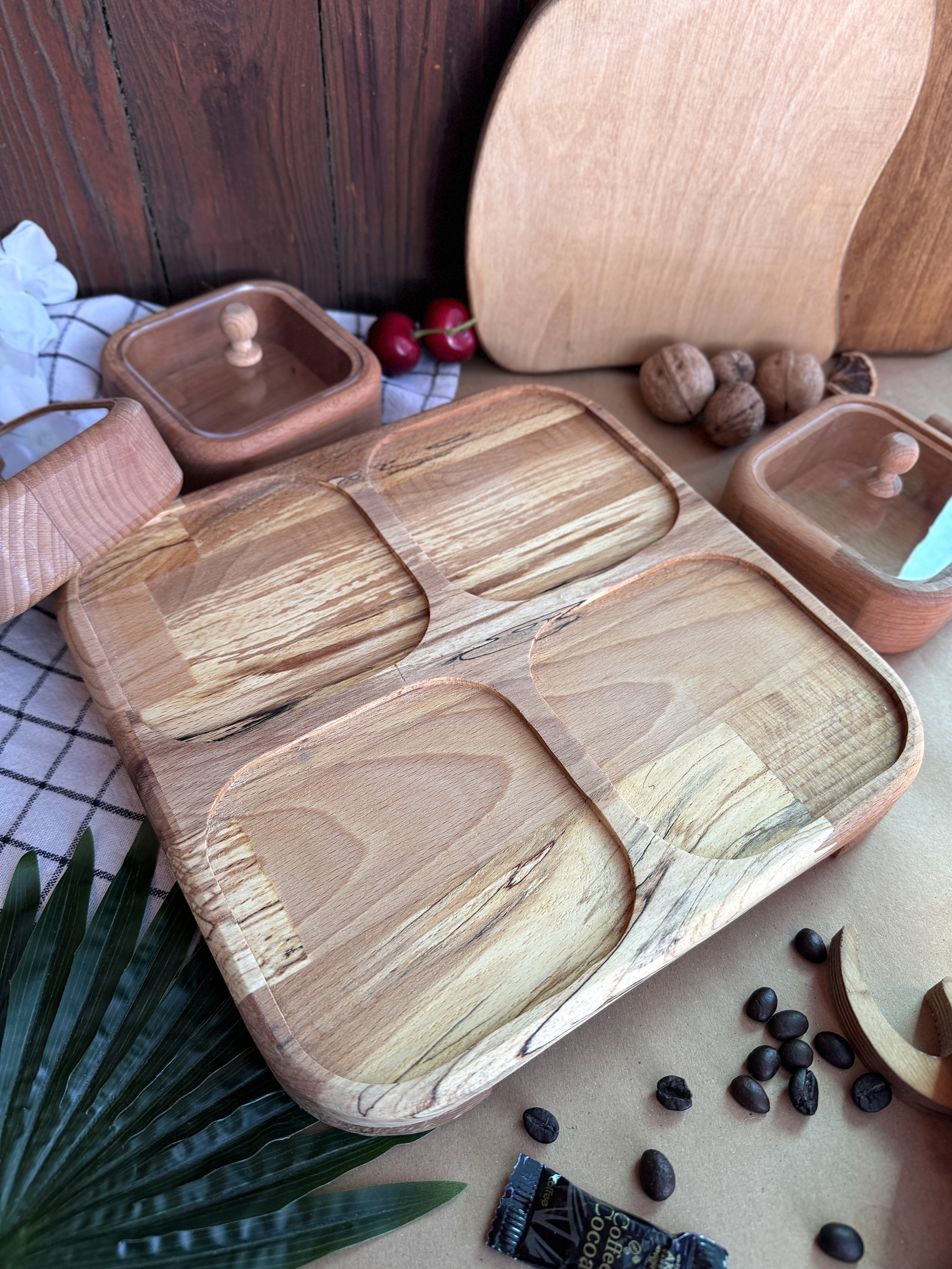 دارای چهار ظرف در دار و یک کفی تمام چوب