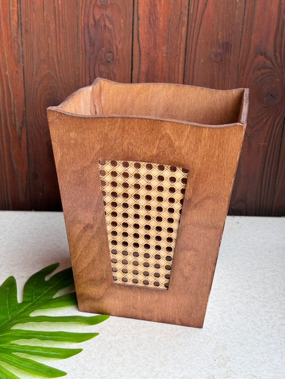 سطل و جا دستمال تمام چوب حصیری