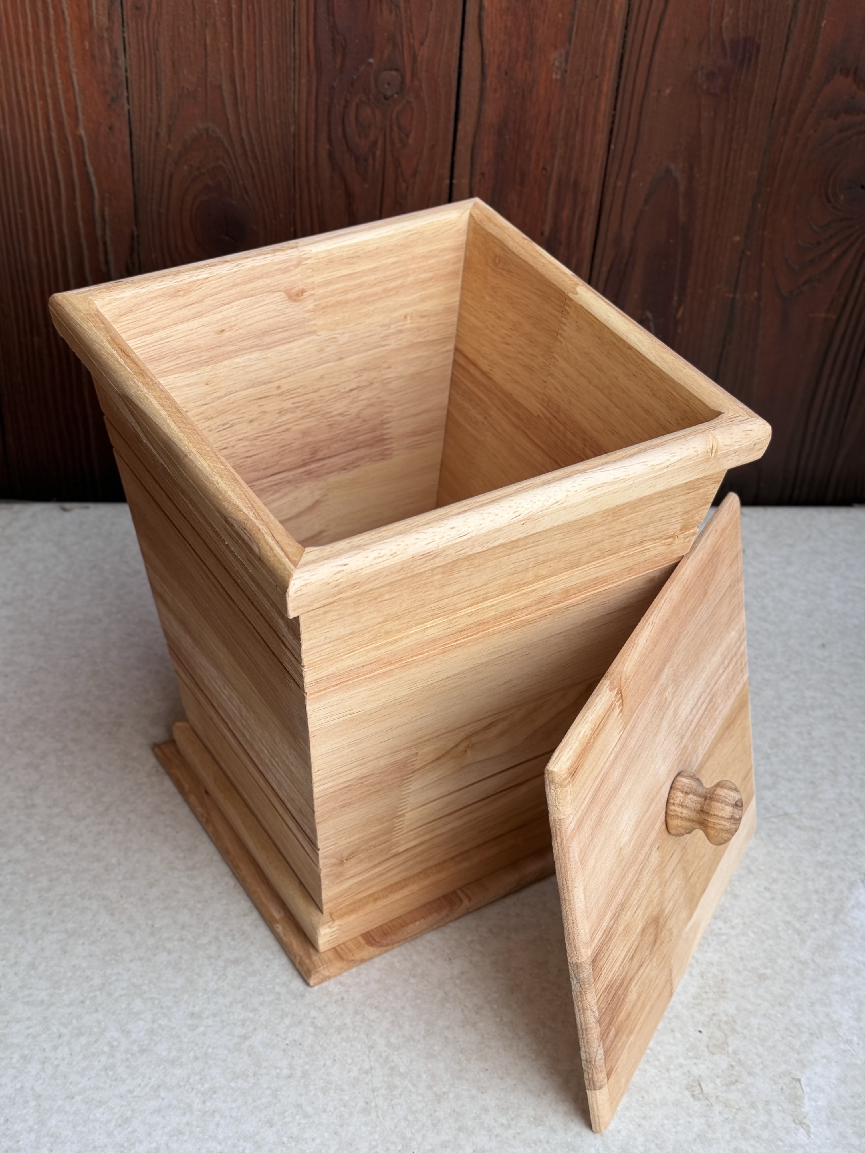 سطل و جا دستمال تمام چوب کیفیت درجه یک سطل دارای درب تمام چوب میباشد جا دستمال کشویی قابل شستشو و ضد آب 🔴وجود گره و ترک چوب در ظروف چوبی کاملا طبیعی میباشد و ایراد کار محسوب نمیشود🔴