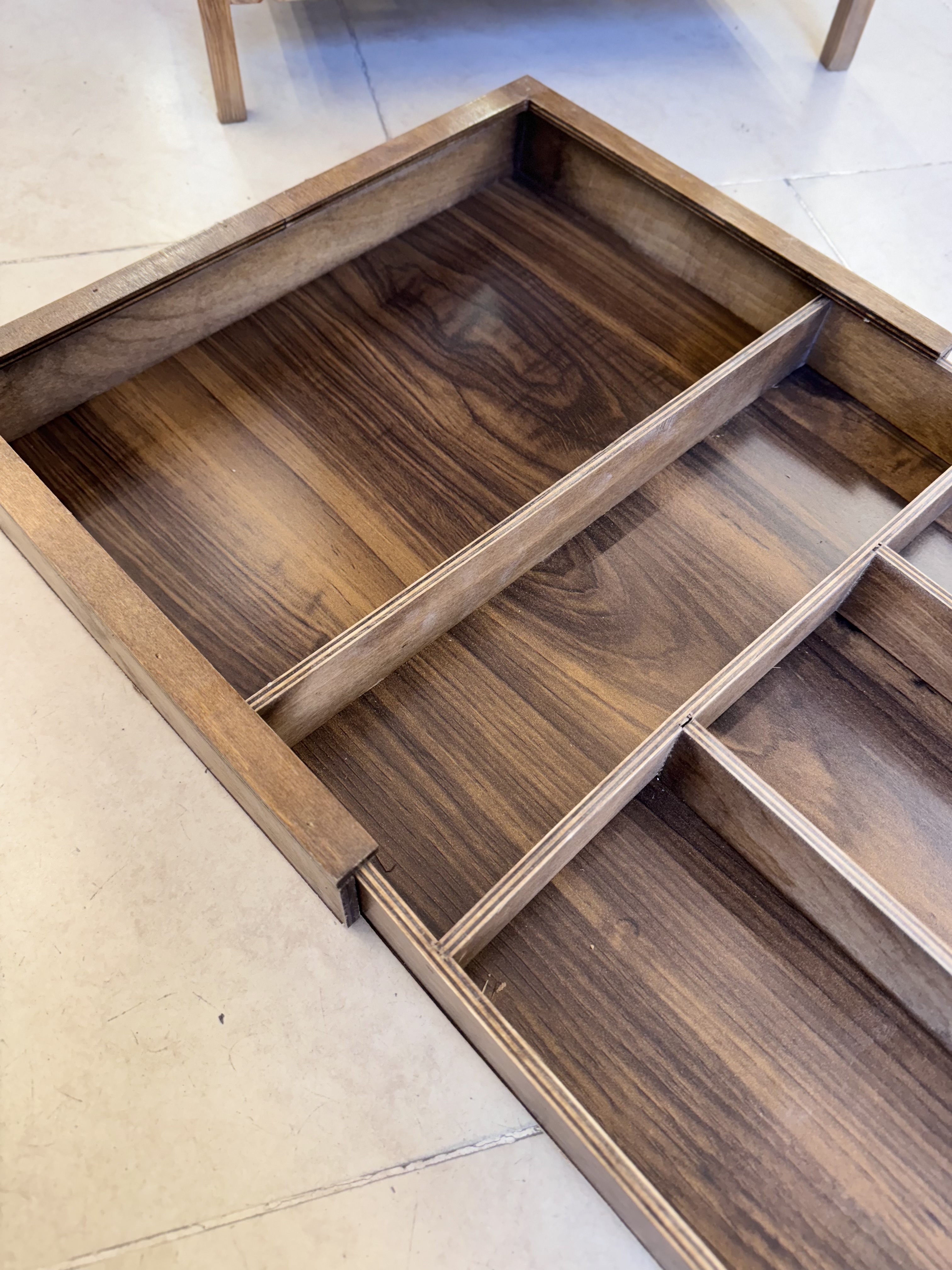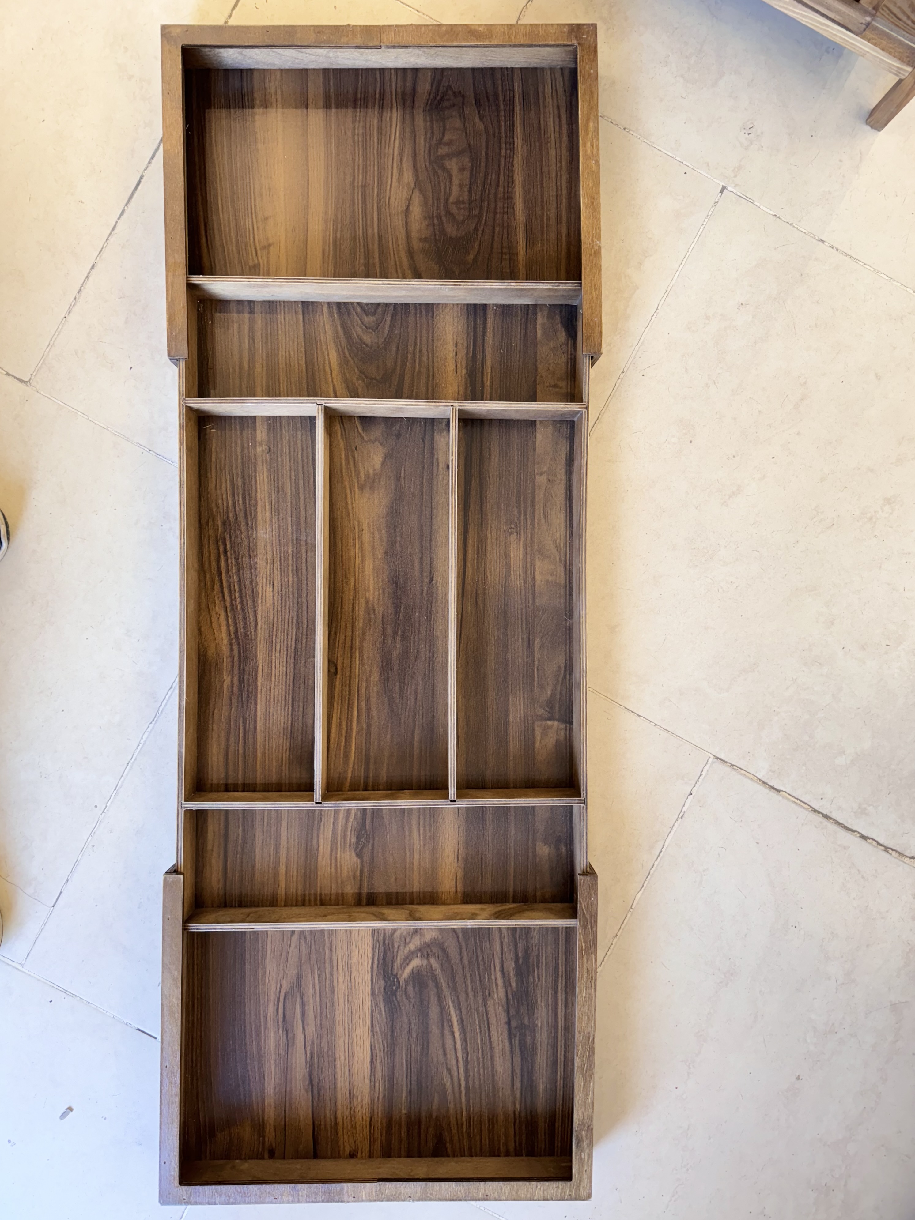 استند نظم دهنده ی کشوی کابینت کاملا چوب (قابل شستشو) عرض بسته62cm از هر طرف30cmباز میشود عرض کلی122cm طول40cm جنس ام دی اف قابل شستشو کیفیت درجه یک
